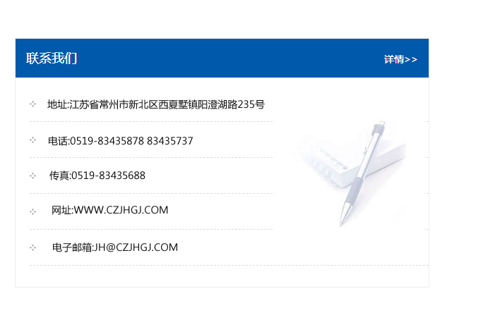 傳真:0519-83435688    郵編:213135    網址:WWW.czjhgj_com.dlpar.com    電子郵箱:JH@czjhgj_com.dlpar.com